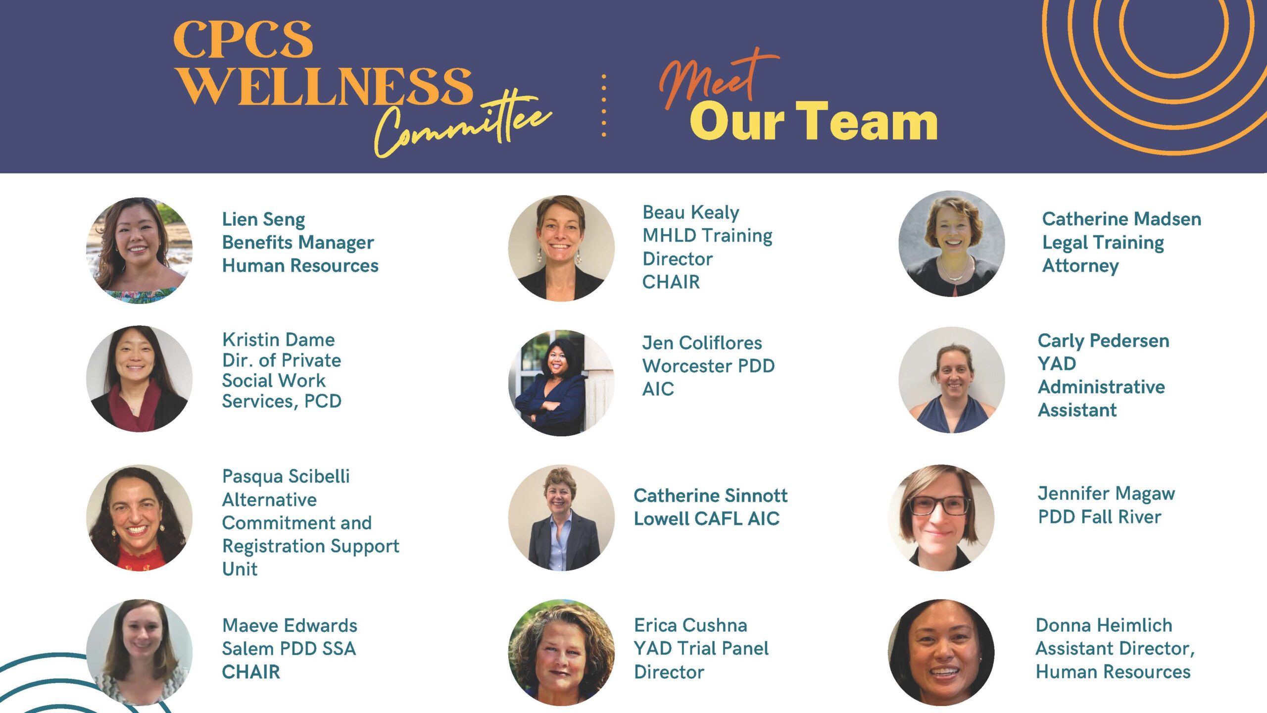 Consistent with CPCS’ core C.A.R.E., (Courage, Accountability, Respect and Excellence), values, the CPCS Wellness Committee, (“Committee”), is dedicated to empowering the wellness of both CPCS staff and private counsel.