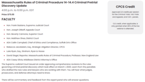 Social Law Library: Massachusetts Rules of Criminal Procedure 14-14.4 Criminal Discovery Update